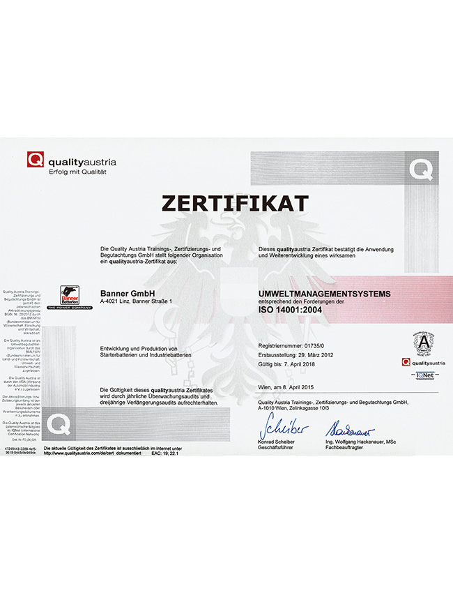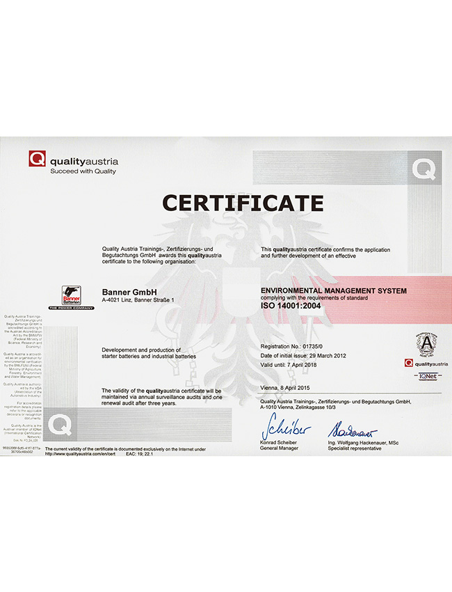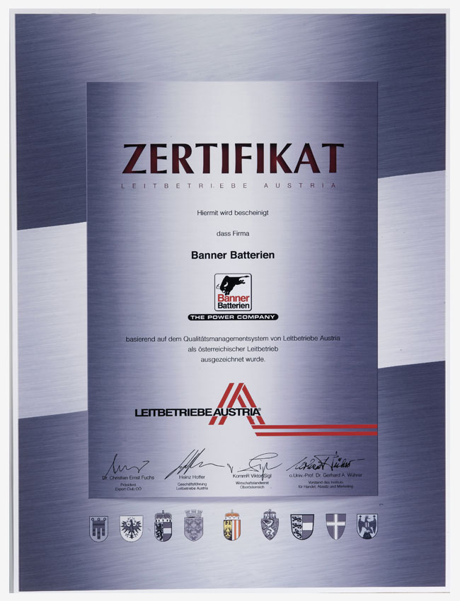 作为欧洲龙头的电池品牌,Banner制造和销售具备优秀品质的,适用于驱动系统和电力供应的启动电池和工业电池。在林茨-莱昂丁的生产工厂中,Banner拥有欧洲最现代化、最环保的电池工厂之一。Banner为宝马、劳斯莱斯、阿斯顿马丁、保时捷、奔驰、奥迪、大众、铃木、沃尔沃、西雅特、凯斯鲍尔、利勃海尔等汽车制造商提供配套。在过去的80年里,著名的大红牛标志代表了满足最严格的质量标准的电池生产,800名员工共同确保了品牌持久的成功。